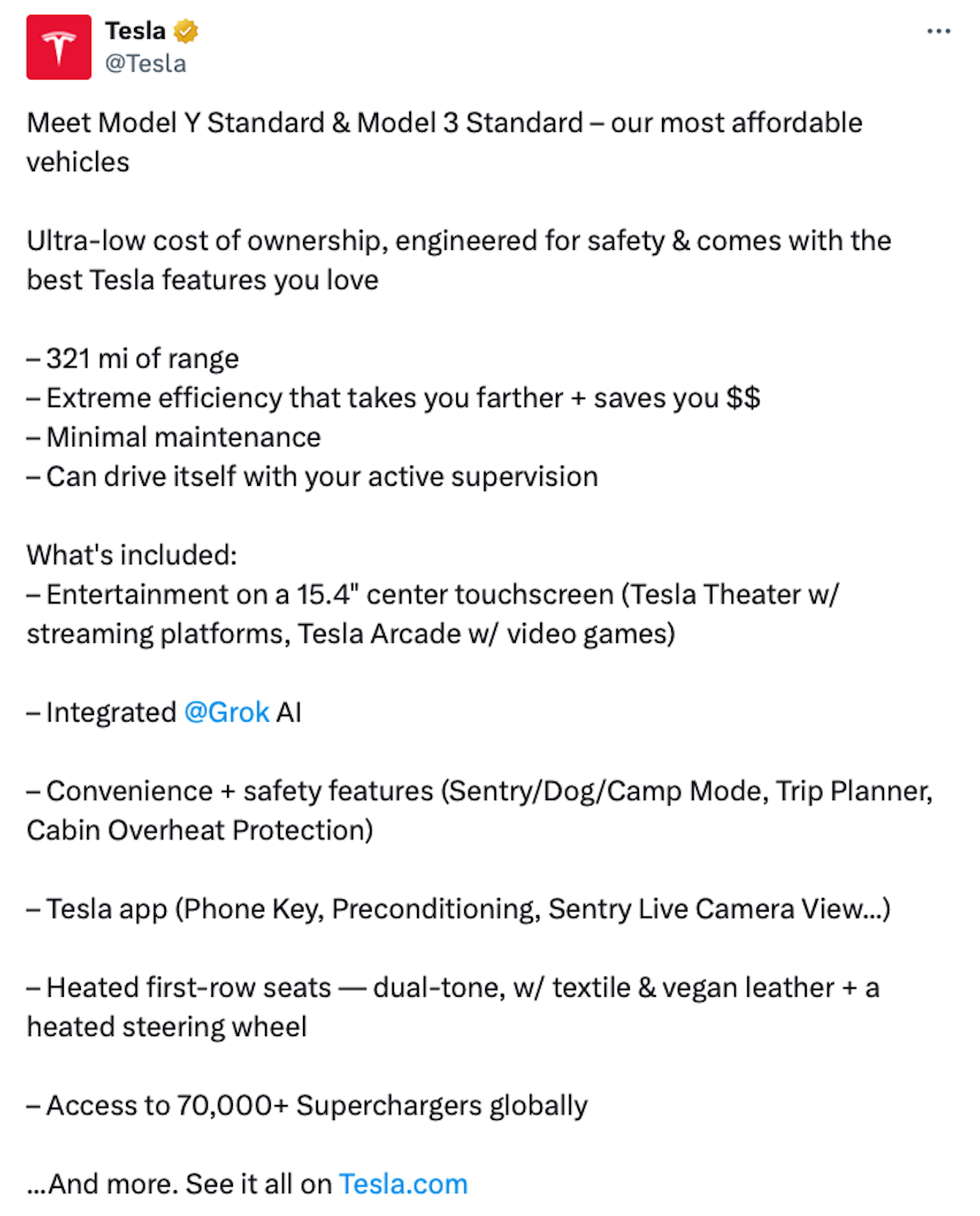 Tesla and CEO Elon Musk teased big news set to come Tuesday, leading some to speculate the announcement would be the long-awaited arrival of a cheap, entry-level vehicle with a price below $30,000. However, what they got — the Model 3 Standard and Model Y Standard — landed with a resounding thud.