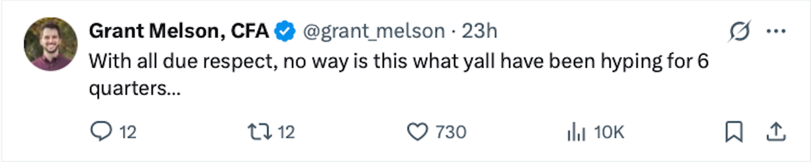 “Very disappointing,” wrote @dsum3r in a post on X, formerly Twitter. “Especially the price. The stocks will faaall!”