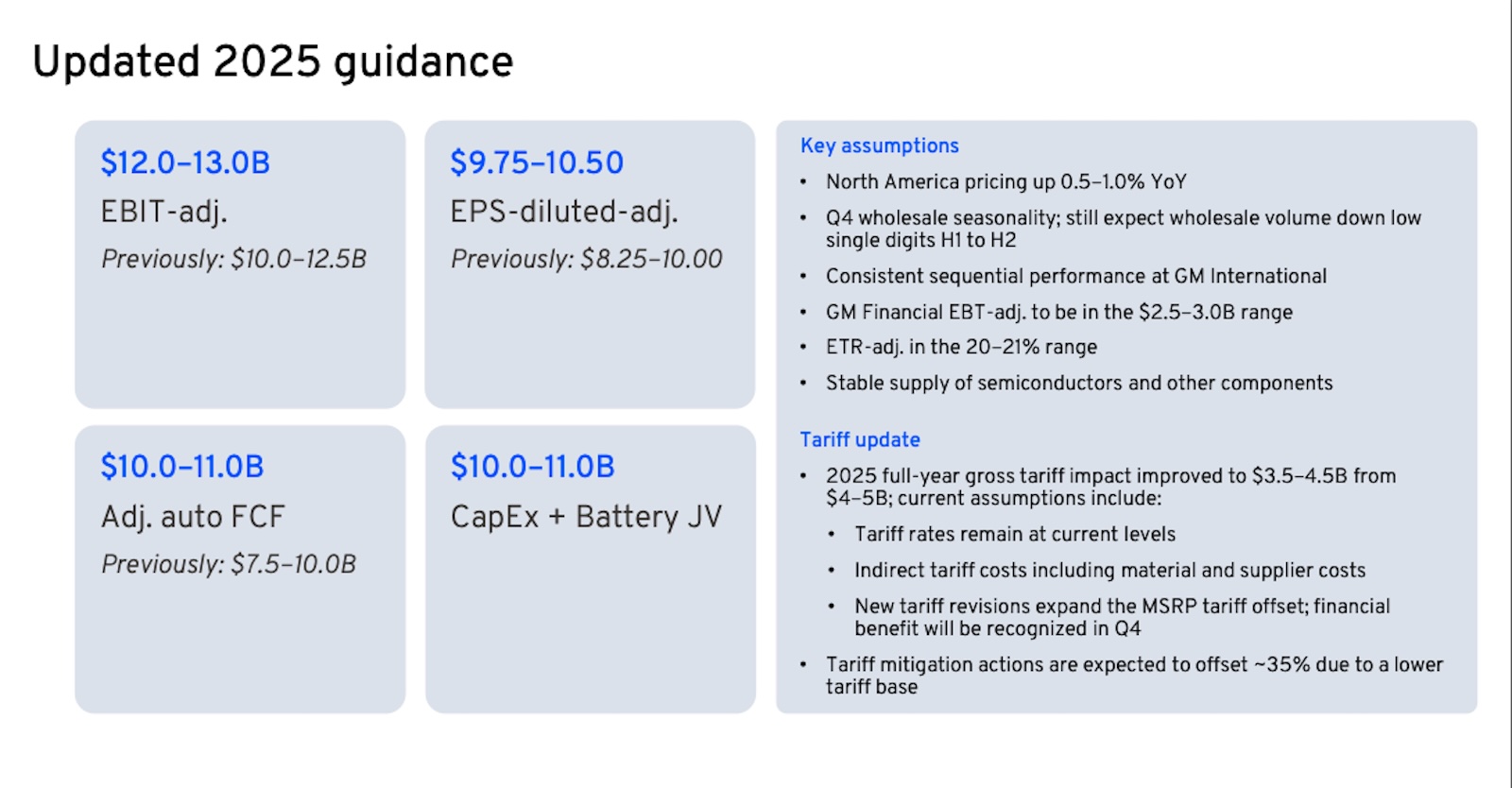 As a result, GM revised its full-year guidance. Company officials now expect its annual adjusted core profit to be between $12 billion to $13 billion. This is higher than the previous estimate of $10 billion to $12.5 billion. The Detroit automaker said tariffs would hit its bottom line less than anticipated, lowering its updated impact to a range of $3.5 billion to $4.5 billion, from a previous $4 billion to $5 billion.