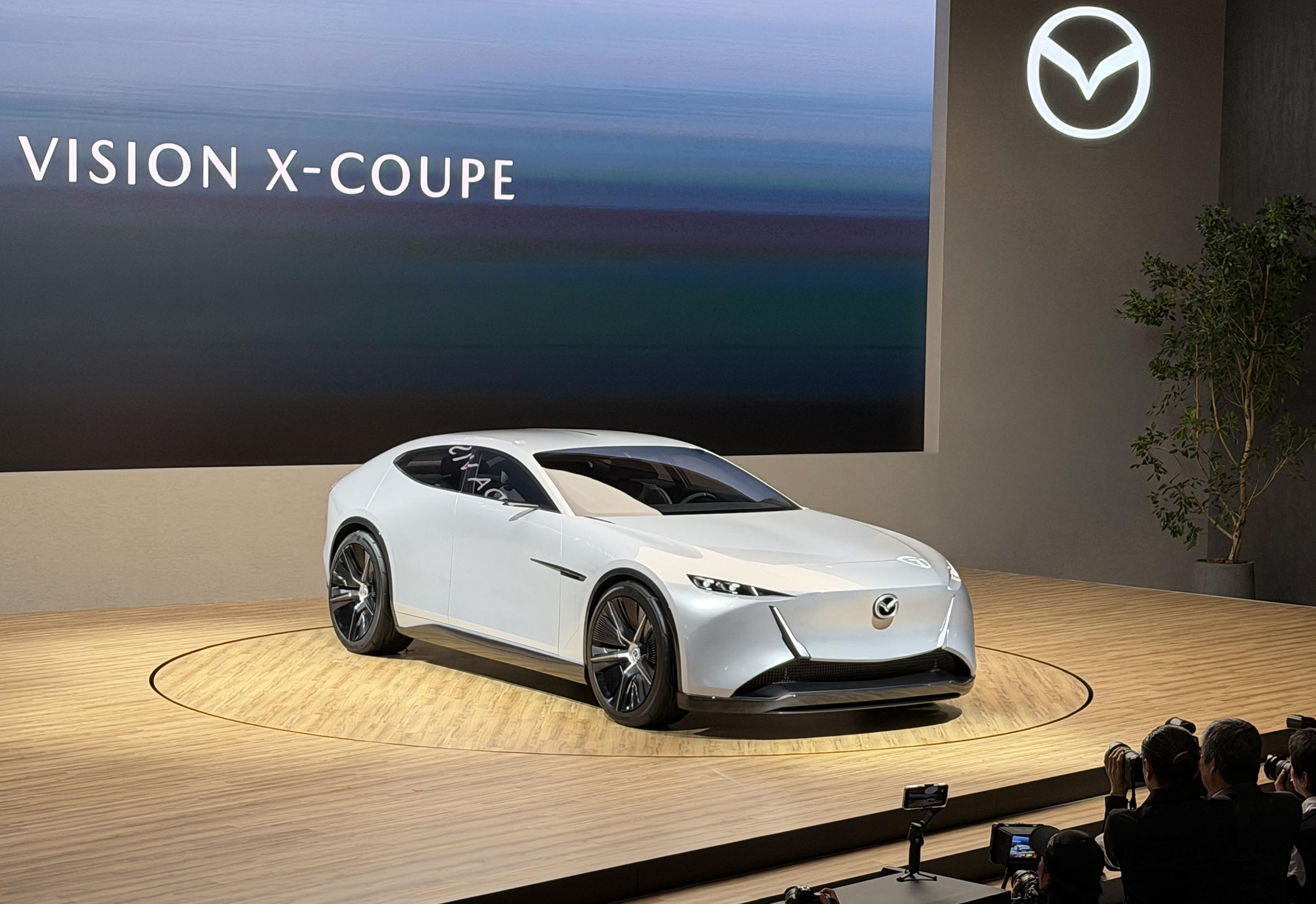 Concept vehicles often provide a vision of the future and that’s doubly true at the Mazda stand, the Hiroshima automaker dropping two intriguing show cars: the Vision X-Coupe and Vision X-Compact. The former model is slightly larger than a Mazda6 sedan and adopts the latest take on the Mazda Kodo design language. But what stands out is what we didn’t actually see: a plug-in hybrid drivetrain using a Wankel rotary engine to extend range after the 100-mile battery pack is exhausted. The X-Concept also introduces a potentially breakthrough system meant to capture CO2 from the engine, storing it until it can later be sequestered. As for the Vision X-Concept, it’s a high-tech microcar about the size of a Fiat 500 EV.