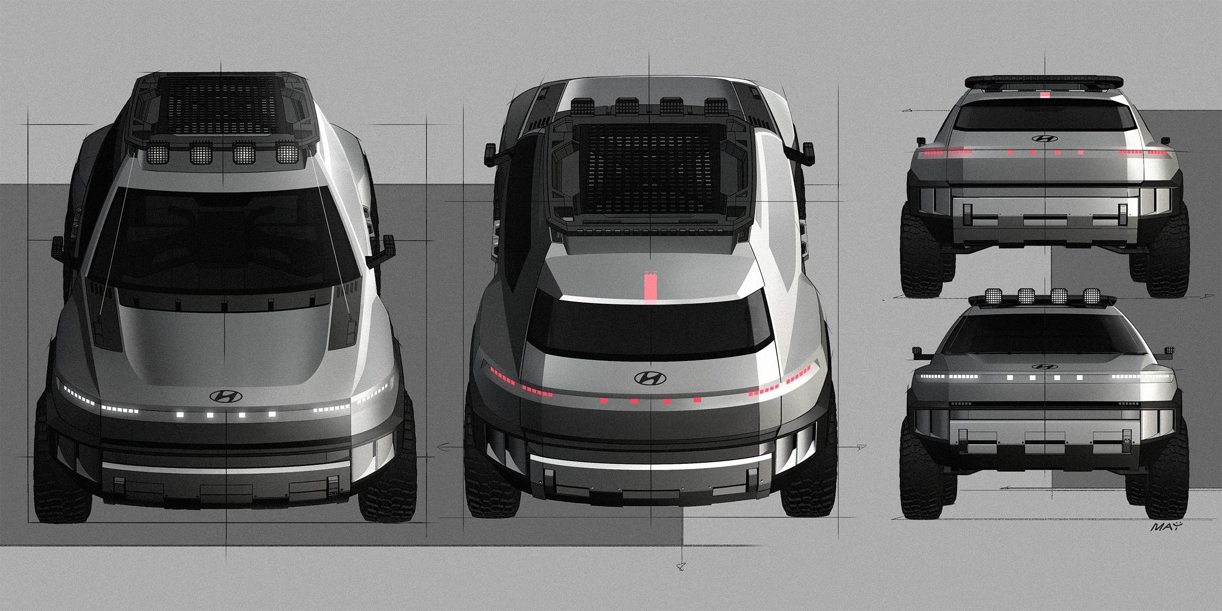 From these sketches and renderings it’s apparent that Crater isn’t just another Hyundai XRT or XRT Pro trim package, models that might be described as “off-road light.” They’re far more rugged, with massive all-terrain tires and significantly more ground clearance than anything Hyundai currently offers in its line-up – more in line with products like extreme Wrangler Rubicon packages.
