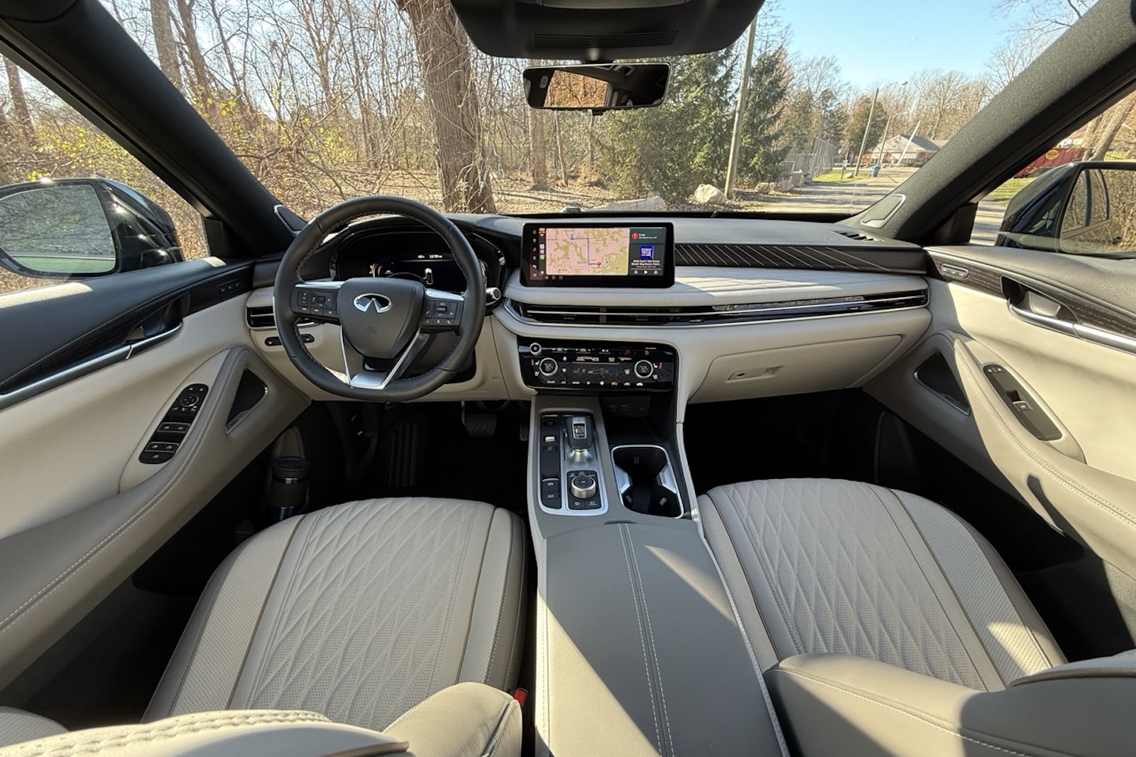 The three-row QX60 offers plenty of room in very comfortable leather seats, which in the Autograph provide massages for front-seat passengers. They’re also heated and ventilated in front and heated in the second row.