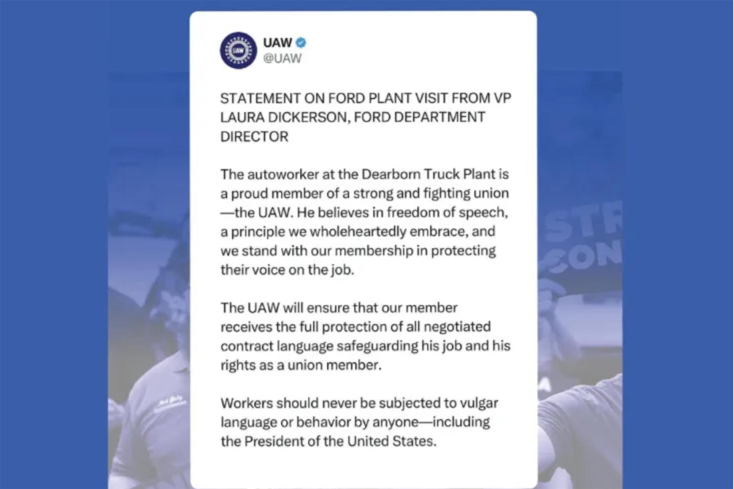 The United Auto Workers Union has stepped in to contest Sabula’s suspension and possible firing. Calling out the “vulgar language” used by the president during the incident, a statement from the union defended the worker’s free speech and said it will work to “ensure that our member receives the full protection of all negotiated contract language safeguarding his job and his rights as a union member.”