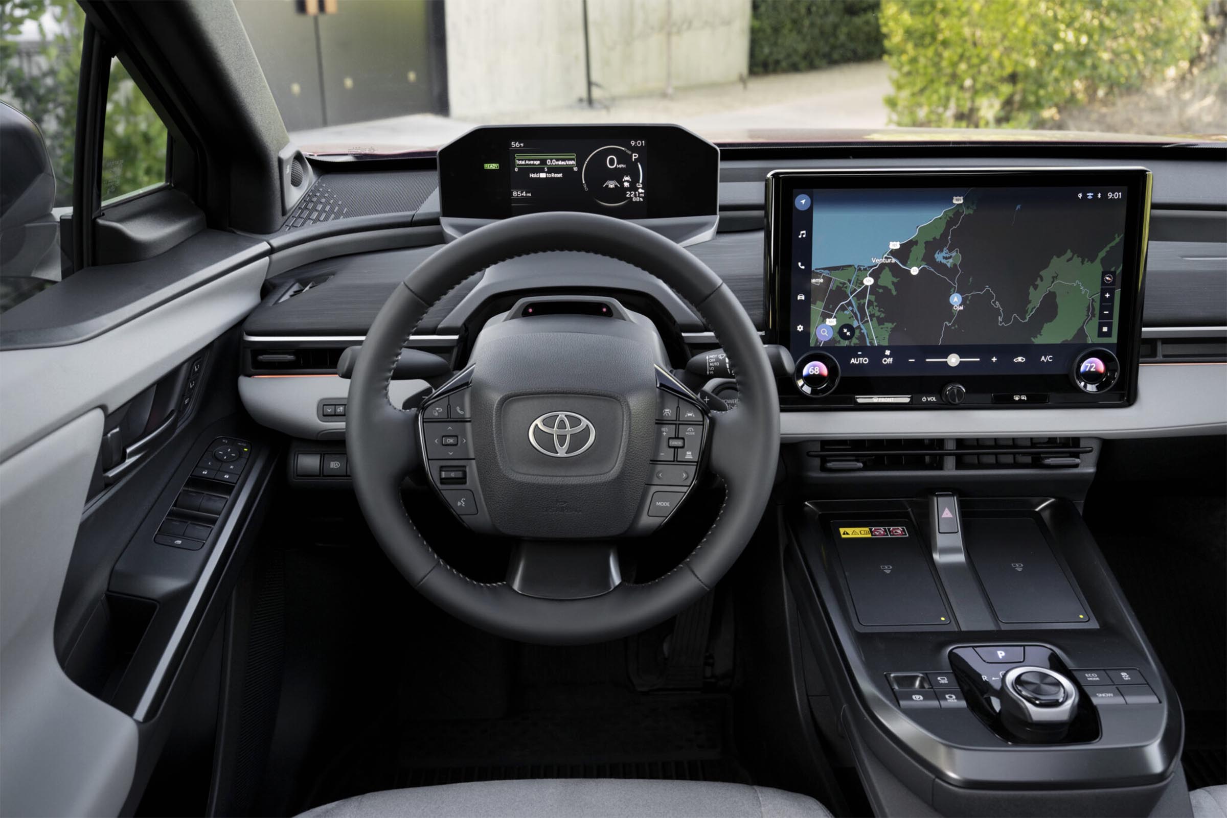 (One surprise: the new EV is offered by Toyota solely in twin-motor, all-wheel-drive configuration, the front motor churning out 223 hp, the rear 116. The Japanese giant’s ally, Subaru, will get its own version, and its Uncharted package will offer both AWD and FWD options.)