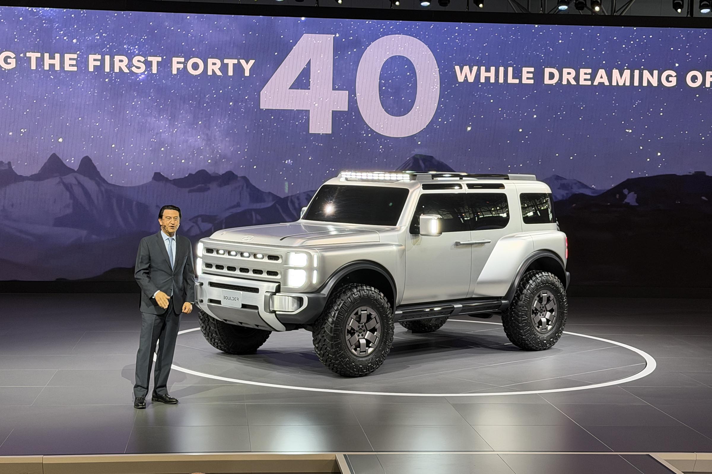 Hyundai clearly stole the show. The Korean carmaker dropped a bombshell at the New York International Auto Show on Wednesday with the debut of the Hyundai Boulder concept, a rugged, body-on-frame SUV aimed at the likes of the Ford Bronco and Jeep Wrangler.